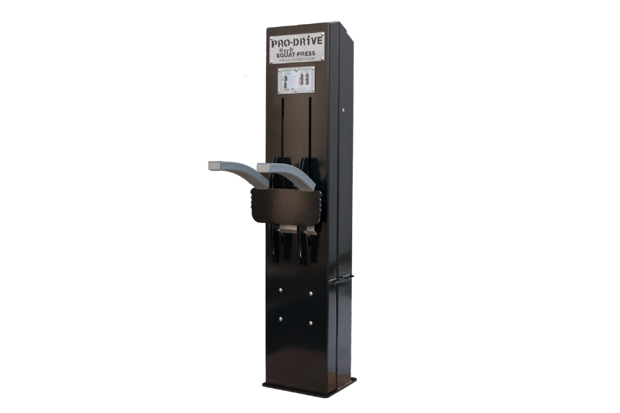 Constructed with fully enclosed weight stacks, selectorized pop-pins in security tracks, and heavy-duty tamperproof materials, the Pro-Drive Squat Press is a low-maintenance solution built to withstand heavy use and outdoor conditions.