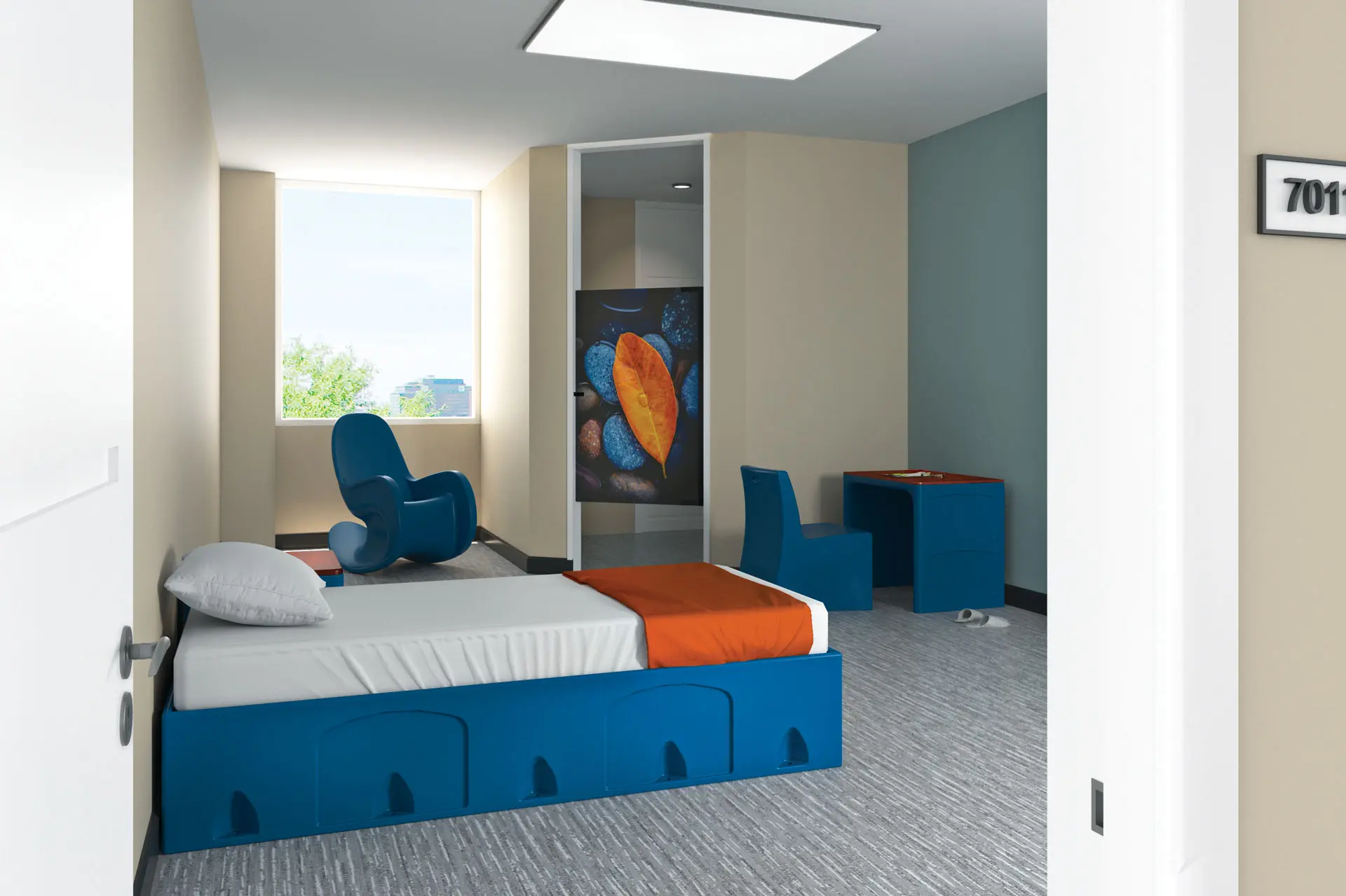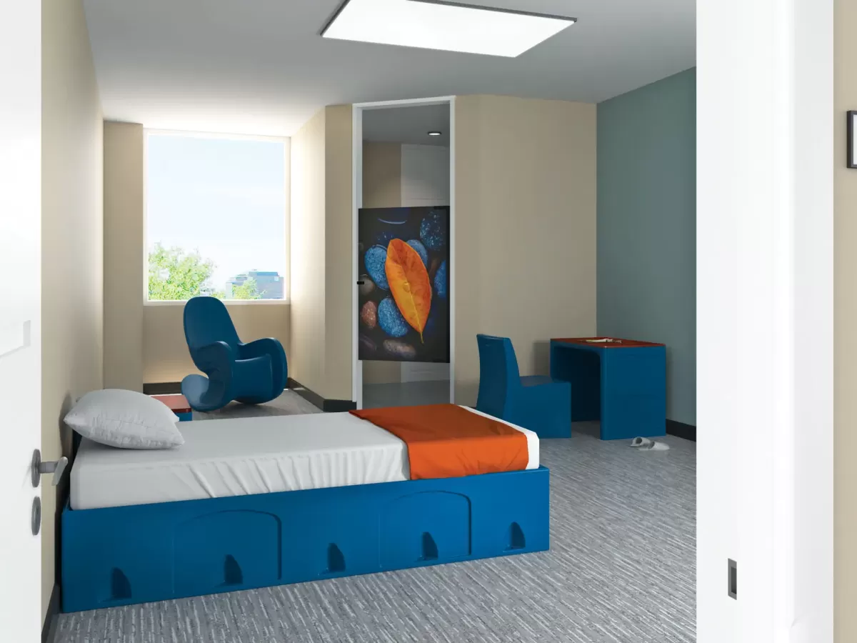Easily cleanable and highly durable, RockSmart® Rocking Chair is GREENGUARD certified and available in a variety of attractive colours. The generous arc provides a relaxing and safe rocking action, while the securely affixed nylon runners protect floors and rear bumpers indicate the limits of safe rocking. It has an anti-ligature design with no internal openings.